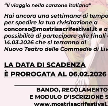 L'Associazione Mangiadischi APS indice per l'edizione 2026 di MOSTRI SACRI FESTIVAL un concorso musicale rivolto a cantanti, cantautori, cantautrici e band appassionati della musica italiana d'autore, senza limiti di età.